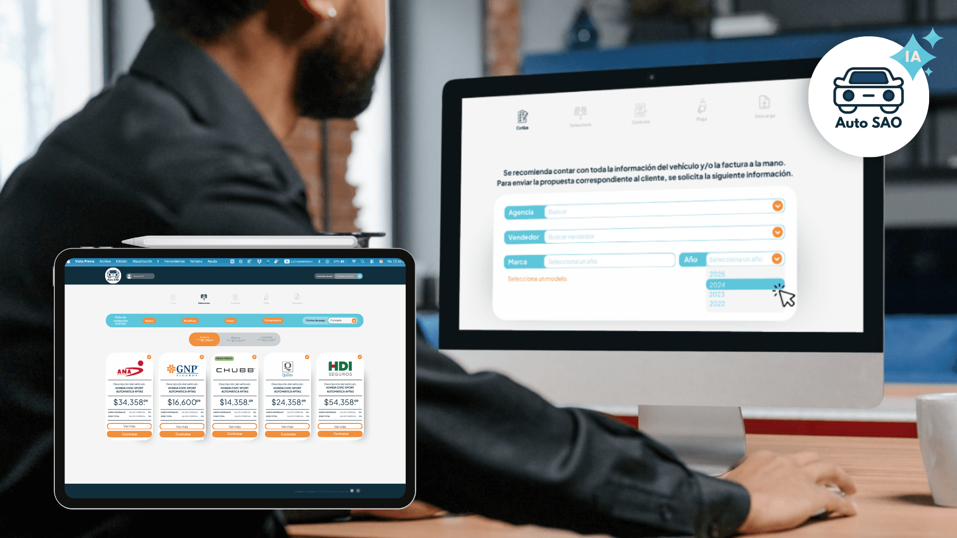AutoSAO está diseñado para organizaciones que cotizan y emiten seguros de automóvil en alto volumen. Centraliza cotización, comparación y emisión en un solo flujo, con reglas por canal y operación, integrándose a tu ecosistema sin cambiar tu forma de trabajar.
